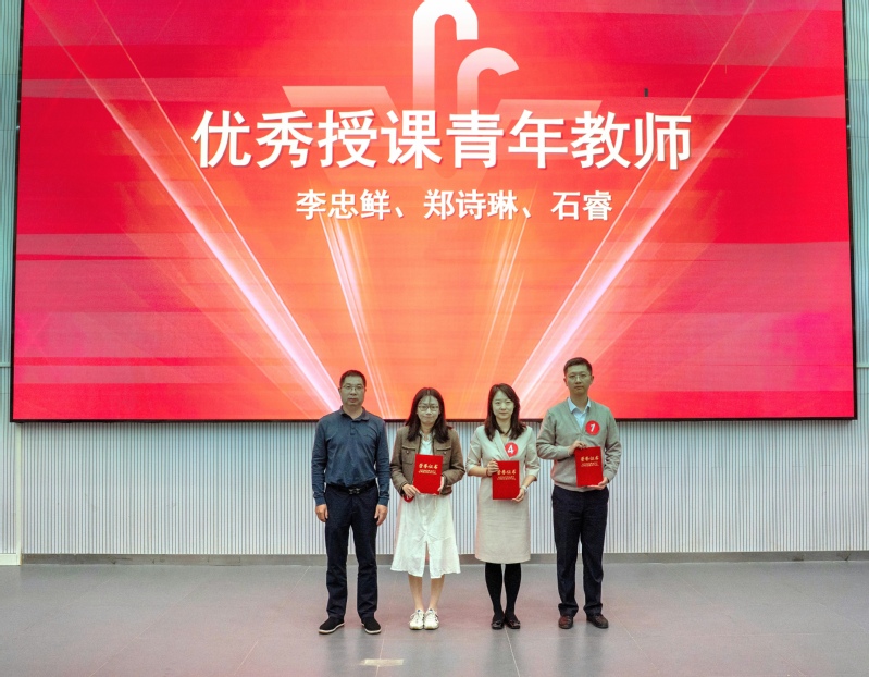 校纪委书记王志云为“优秀授课教师”颁奖,获奖教师由左至右:郑诗琳、李忠鲜、石睿