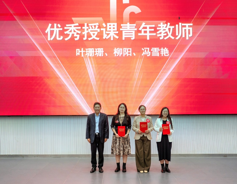 党委副书记刘祖华为“优秀授课教师”颁奖,获奖教师由左至右:冯雪艳、柳阳、叶珊珊