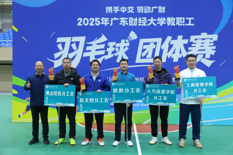 经过一整天紧张激烈的角逐,统计与数据科学学院分工会、体育学院分工会、机关一分工会、人文与传播学院分工会分别获得甲组第一至四名,财政税务学院分工会、图书馆分工会、大数据与人工智能学院分工会、公共管理学院分工会并列甲组第五名。联教分工会、工商管理学院分工会、机关四分工会、人力资源学院分工会分别获得乙组第一至四名,金融学院分工会、网络信息与教育技术中心分工会、机关三分工会、佛山校区分工会并列乙组第五名。校工会常务主席陈红丽、专职副主席王健分别为两组获奖队伍颁奖。