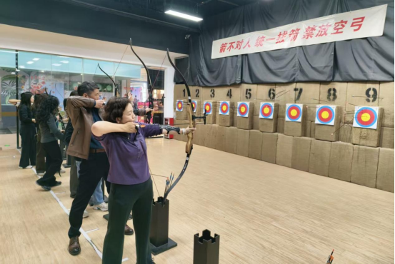 午餐过后,大家前往运动场馆,开展射箭与冰壶团建活动。在专业教练指导下,老师们纷纷上阵体验射箭的专注与冰壶的协作魅力。既有紧张刺激的竞技瞬间,也有相互鼓励、协作配合的暖心画面。运动场上笑声不断,充分展现了地环经院教师积极向上、团结奋进的精神风貌。