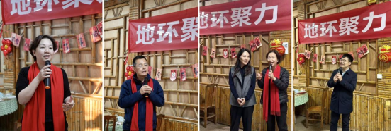 当晚,地派农庄华灯璀璨,一场专属于地环人的荣耀盛典温暖上演。老师们郑重写下“时光胶囊”寄语未来,陈莎莉书记与肖荣波院长致辞向奋斗者致敬。晚会特别邀请了龙门县及地派镇相关领导出席,校地领导同台合唱《明天会更好》,唱响了助力“百千万工程”、深化院地合作的坚定决心 。在“星光长廊”颁奖环节,学院不仅揭晓了卓越贡献、教学科研等重磅奖项,还通过“行走的知识库”等趣味奖项展现了地环人多元活泼的风采。各团队亦各显其才,从深情的诗朗诵《讲台之上,岁月之中》到激昂的合唱《红日》,凝聚起强大的向心力。